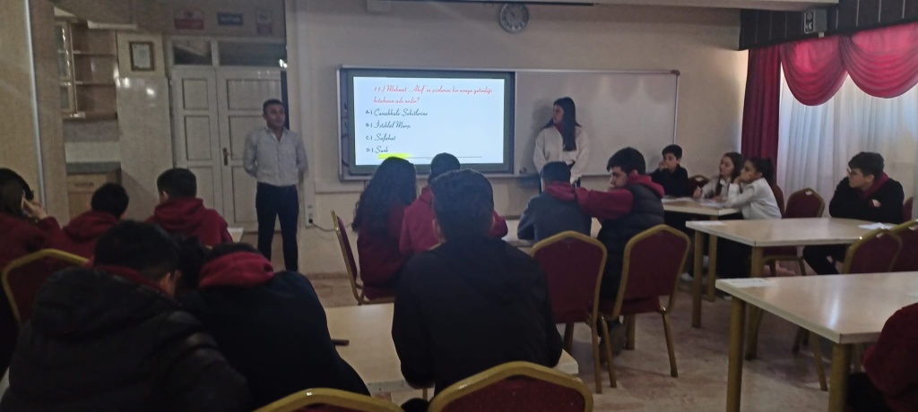 12 Mart İstiklal Marşının Kabulü ve Mehmet Akif ERSOY'u anma Günü etkinlikleri kapsamında okulumuzda İstiklal Marşı ve Mehmet Akif ERSOY konulu Bilgi Yarışması düzenlendi.Çalışmada emeği geçen öğretmen ve öğrencilerimize teşekkür ediyoruz.