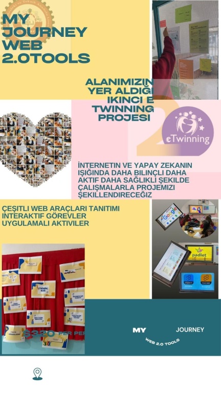“GELECEK MESLEKİ EĞİTİMLE GELECEK ” ve “MY JOURNEY WEB 2.0 TOOLS” E twinning projeleri kapsamında öğrencilerimiz,Mesleki Eğitimin önemini kazanımlar halinde projede işleyerek , günümüz teknolojileri ve yapay zekanın aktif olduğu diğer E twinning projesi ile sosyal medya ve yapay zeka araçlarına etkili ve denetimli kullanmanın öneminin kazanımlarına eriştiler.